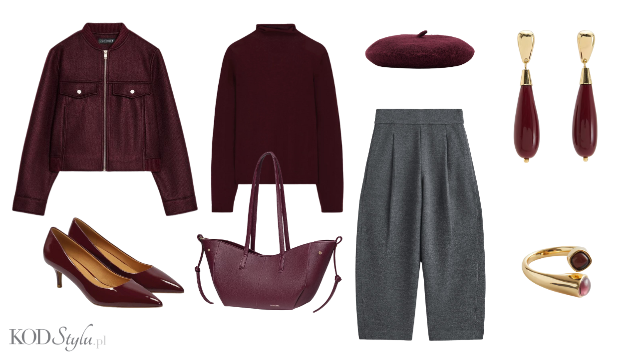 W połączeniu z czernią tworzy efekt mocny, elegancki i wyjątkowo szlachetny. A gdy jako dodatki dobierzemy  srebrne akcenty, to stylizacja zyska nowoczesny, lekko luksusowy charakter.